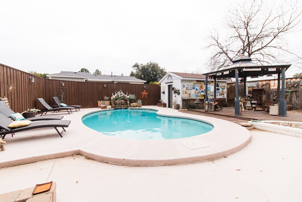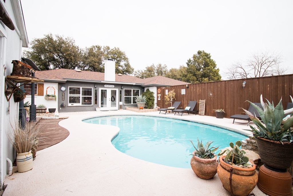 Remarkably cared for home with a fantastic pool. 3 bed 2 bath with an enclosed patio area. This backyard is perfect for entertaining & enjoying summer in Texas. All tile & wood flooring throughout. Microwave & dishwasher are a year old. Must see!