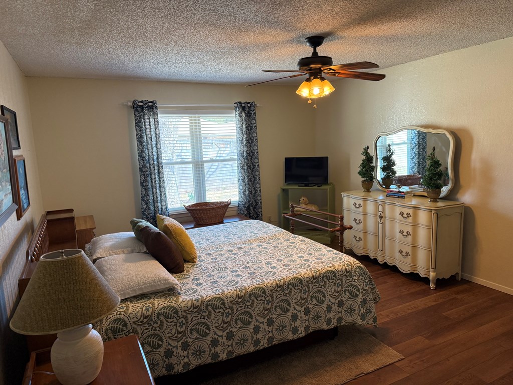 Welcome to your dream home! This beautifully updated three-bedroom, three-bath residence offers an abundance of space and comfort, perfect for modern living. Featuring two master suites, each with their own luxurious bathrooms equipped with step-in showers, this home is designed for ultimate relaxation. You'll be impressed by the large bedrooms, ensuring everyone has their own retreat. The expansive walk-in closet provides ample storage, making it easy to keep your wardrobe organized. Enjoy the added comfort of attic fans, which enhance airflow and coolness throughout the home. OH! This home also features triple Pane windows for added energy efficiency. Enjoy the peacefulness and tranquility in your covered back porch, well manicured yard, and the well constructed storage unit. Additionally, the roof was replaced in 2024, offering peace of mind for years to come. Don't miss out on this incredible opportunity to own a spacious and stylish home—schedule a viewing today!