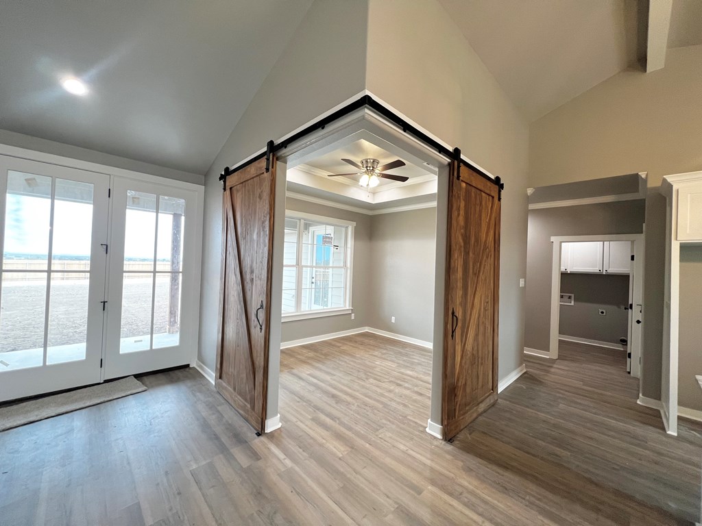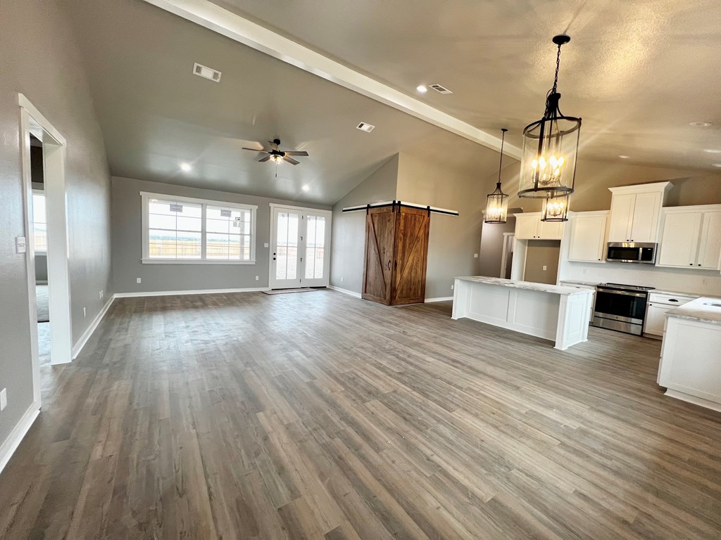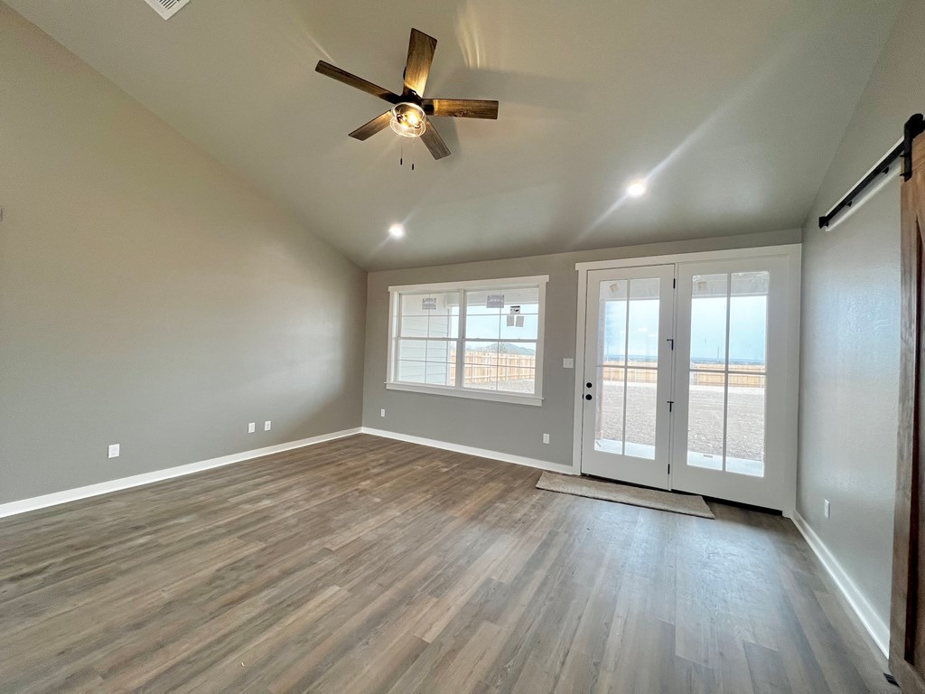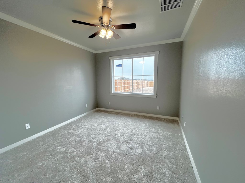 Absolutely gorgeous 1 year old home in Baker Ranch. This home features 3 large bedrooms,a wonderful open floor plan and an additional room to use as an office or a den. This home has a fabulous front porch and From the moment you walk in it has a big open floor plan with vaulted ceilings, an amazing kitchen with large island, marble countertops, stainless steel appliances, custom cabinetry and a pantry. This home has a split floor plan with an amazing primary bedroom at one end. The primary bedroom has vaulted ceilings, a five piece bathroom with large shower, a soaking tub and a massive walk-in closet. The two other bedrooms are at the other side of the house with a bathroom in between them. There is a large covered back porch with a backyard that is fully fenced, landscaped with a sprinkler system in the front and half of the back yard. Since this lot is so big only half is irrigated but the possibilities are endless to create your dream yard.