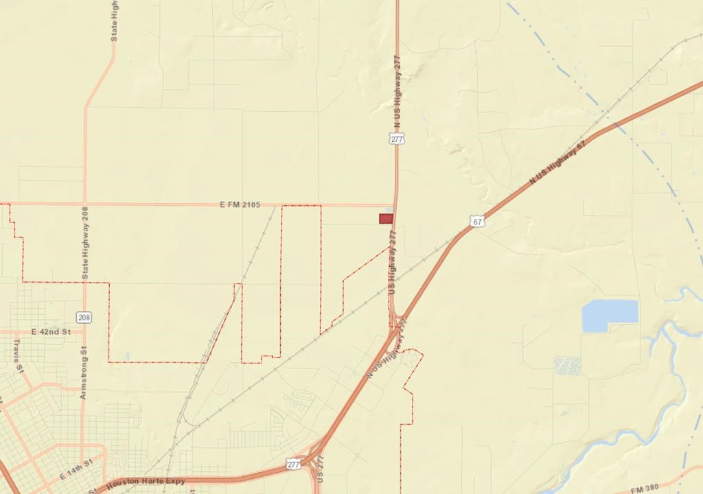 Look toward the future! This corner is right in the middle of where the new Ports to Plains Interstate is going through and down the road from the new Rail Yard. Terrific exposure to a very high traffic count and then what the future holds! Would make a excellent Truck Stop and/or Truck Wash. Just outside city limits. Over 12 acres that has been graded flat, good foundation, and perimeter fenced. Has strong well, septic, and electric. Dwelling is a single wide Mobile Home that has been added onto. Owner will either leave for new buyer, or remove if wanted. Please contact listing agent for more information.