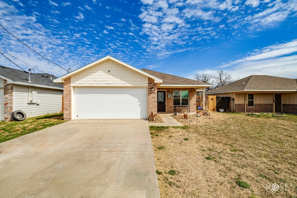 Hey there, future homeowner! Ever dream of a place that feels like home the moment you walk in? Well, 4722 Oaklawn Blvd is calling your name! This isn't just a house, it's a 3 bed, 2 bath, 1180 sq ft slice of awesome, built in 2020. Think open concept living, perfect for game nights & making memories. The kitchen? Prepare to be wowed! Stunning stained cabinets and trim, gleaming granite countertops, & a great pantry. Luxury vinyl flooring flows throughout, adding a touch of elegance. Out back, a huge yard with double gate entry awaits your imagination – think backyard BBQs and maybe even a pool? Relax on the covered patio while the sun sets. At 4722 Oaklawn Blvd, every detail has been crafted with care, creating a space that's not just a house, but a place you'll be proud to call home. Check out the video tour on YouTube by searching 4722 Oaklawn, San Angelo, TX.