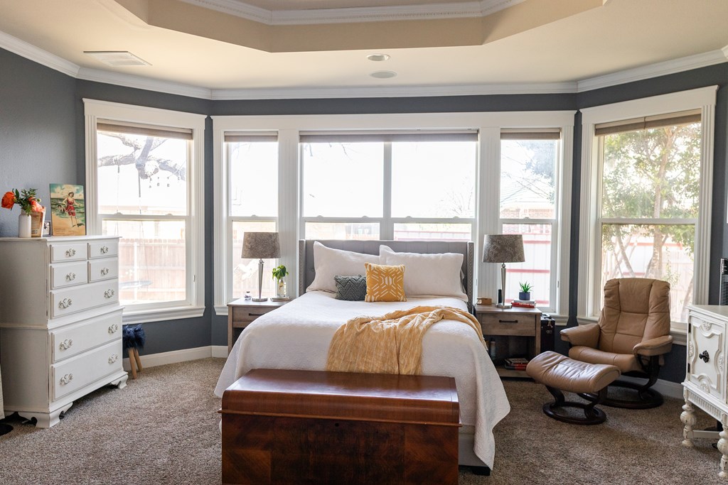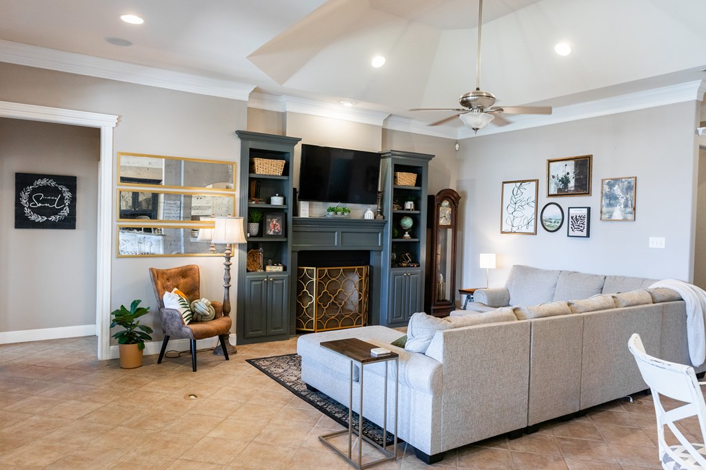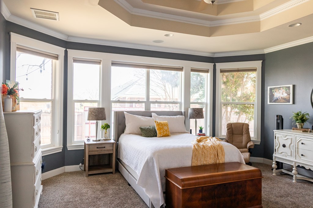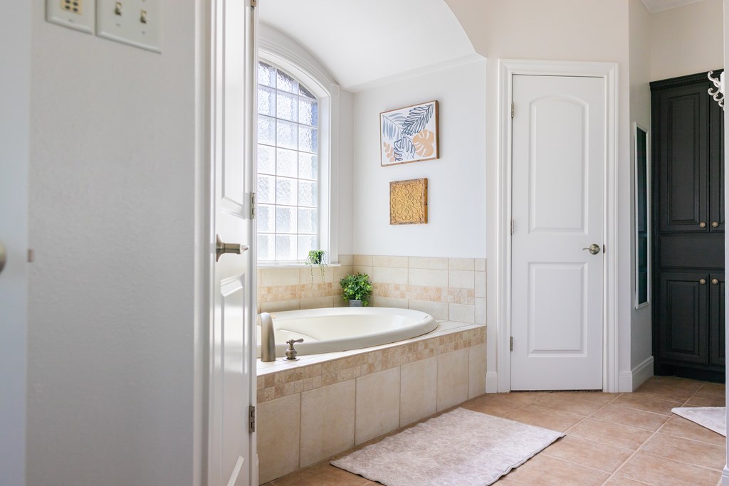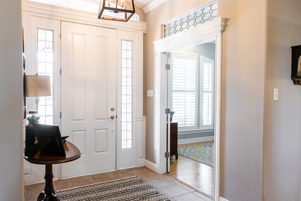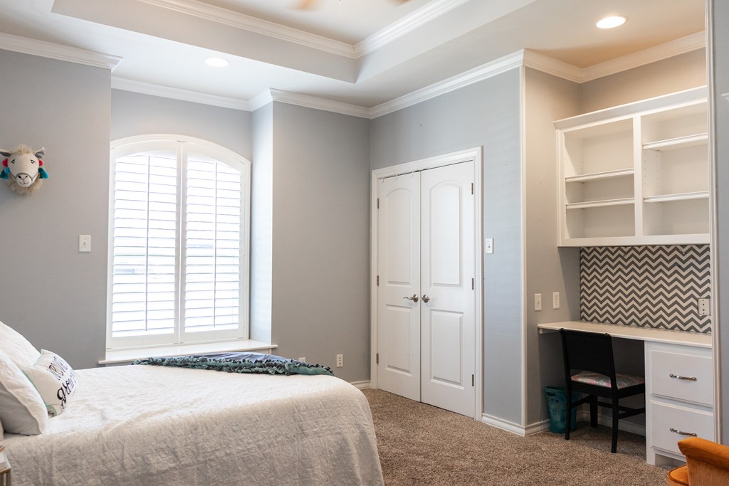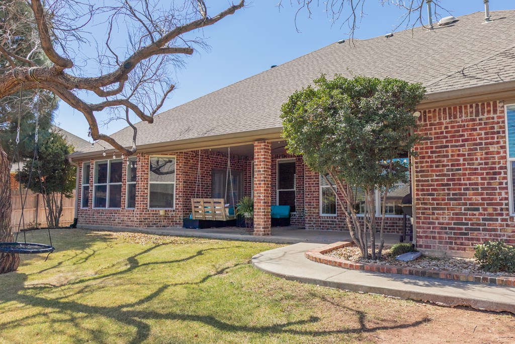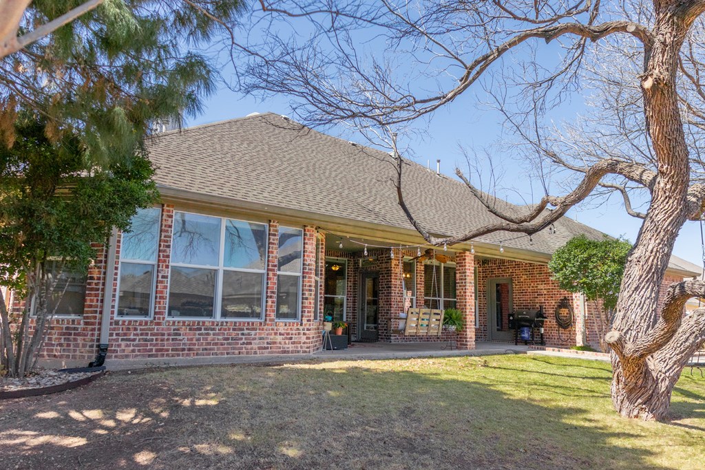 This charming home with stone accents in the desirable Bentwood County Club neighborhood. A covered front porch invites visitors into a spacious living room that features built-in bookshelves and a gas fireplace, with large windows connecting to the kitchen and dining area. The chef's kitchen boasts elegant custom cabinetry and a generous bar top for entertaining. A standout feature is the expansive master suite, complete with a wall of windows, private patio access, built-ins, and a luxurious bathroom. A second master suite also offers patio access and a spacious bathroom for guests. The versatile second den or office is complemented by a nearby half bathroom. Two additional bedrooms at the front include built-in desks and share a Jack & Jill bathroom. Additional features include a large laundry room, mudroom lockers, & a covered back patio, along with an audio system, plantation shutters, & a three-car garage. This home combines comfort and elegance in a well-established community.