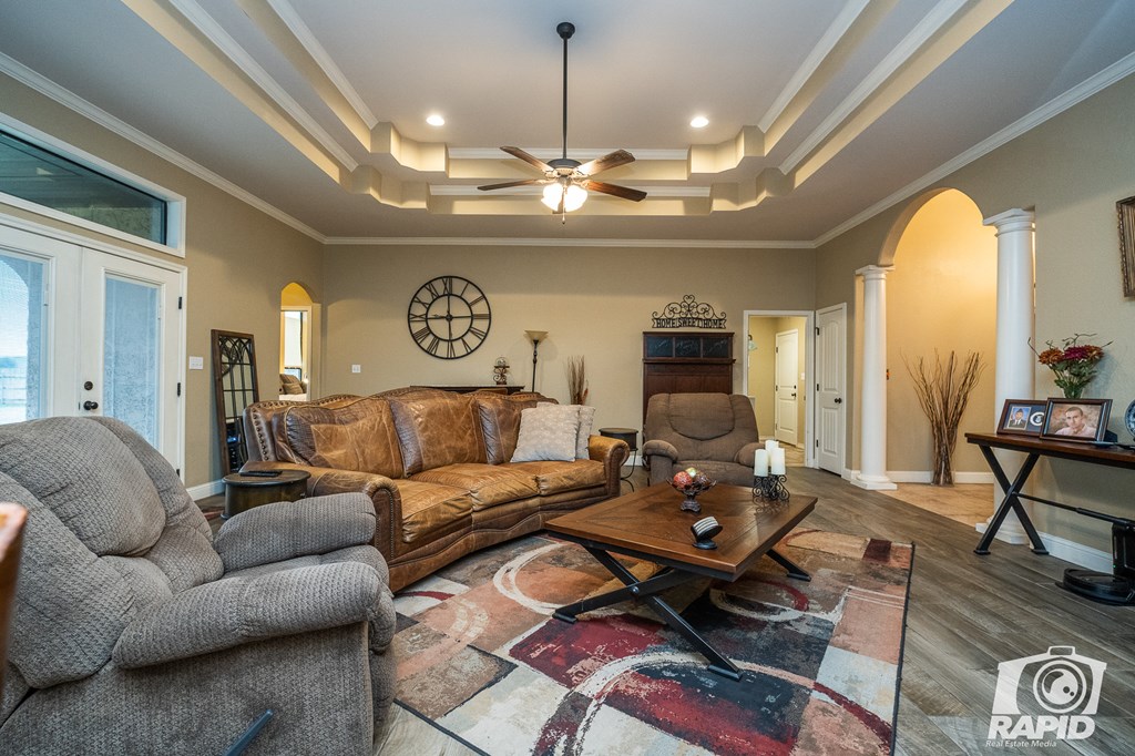 Imagine your dream home nestled on a lush .700-acre lot, offering both privacy and serenity. This custom-built home features a thoughtfully designed open floor plan that seamlessly connects the living, dining, and kitchen areas, perfect for entertaining or family gatherings. The split bedroom arrangement provides a quiet retreat, with the master suite on one side and two additional bedrooms on the other, ensuring comfort and privacy for all. A dedicated office space allows for productivity and focus, while the modern kitchen boasts a breakfast bar and custom cabinets, catering to both the home chef and casual dining. The oversized garage provides ample storage and workspace, accommodating vehicles and hobbies alike. This home combines style, function, and luxury, making it an ideal sanctuary for any family.