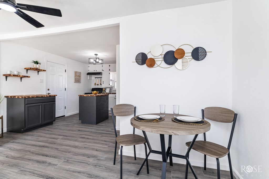 Welcome to this beautiful remodeled 2-bed, 1-bath home nestled on 1.7 acres of land. The interior boasts brand-new flooring, fresh paint, and updated light fixtures throughout. The kitchen has been thoughtfully upgraded with butcher block countertops, cabinetry, an island, a dedicated coffee bar, and stylish floating shelves. The completely renovated bathroom features a new vanity, mirror, toilet, tiling and bathtub, offering a fresh, modern look. Additional updates include new mini-split systems and water heaters, ensuring year-round comfort. Outside, the home has been fully painted, and a new roof has been installed, providing peace of mind for years to come. The property also includes a workshop with electricity and running water, perfect for hobbies or storage, and it even features a second bathroom and washer/dryer hookups. With on-site septic and well water, this home offers the perfect balance of modern amenities and a quiet setting.