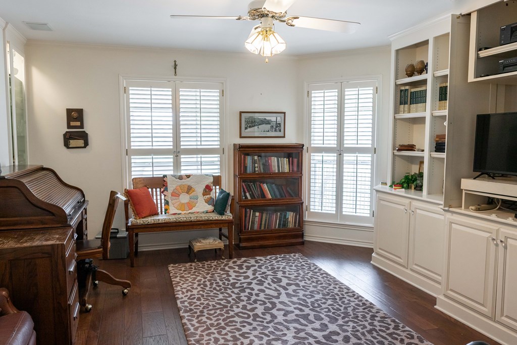 This lovely low maintenance home has a premier location overlooking the 12th hole of the golf course at Bentwood Country Club. With split bedrooms, open floorplan and a large kitchen w/ island- it has everything a buyer will want to enjoy an easygoing lifestyle with a great space to entertain friends & family. Beautiful handscraped hardwood floors, gas fireplace and a super flexible floorplan that can accommodate a full size office, a second tv/living space or even a third bedroom w/ minimal renovation! The kitchen is very spacious w/ double ovens, pantry & solid wall of incredible storage & cabinets. Plantation shutters throughout give lots of beautiful natural light & accent that coveted golf course view. The split bedrooms each have their own bath- plus a convenient half bath in garage to accommodate those weekend warriors & their gardening projects! Large 2 car garage w/ separate golf cart garage. Come enjoy your spring on this charming, covered patio w/ stunning golf course view!