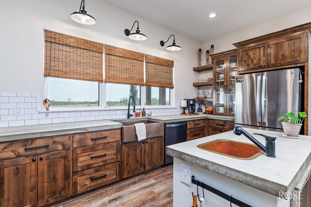 Welcome to this beautiful, custom-built home on nearly 20 acres. This spacious property features 4 bedrooms, 3 full baths, and a thoughtfully designed split bedroom layout that offers both privacy and comfort. The main house boasts high-end custom finishes throughout, making it truly one-of-a-kind. In addition to the main living space, the property includes a separate apartment and a barn, providing additional living space or a versatile area for hobbies and storage. The apartment offers 1,790 sq ft of covered space, perfect for extra parking or creating a private retreat for guests. This home is equipped with many practical features, including being fully sustained by a water well, ensuring a reliable water source for all your needs. Families will love the chipping green with a bunker in the backyard—a great spot to practice your short game. For added peace of mind, a safe room is integrated into the home, providing security and comfort.