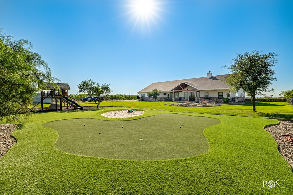 Welcome to this beautiful, custom-built home on nearly 20 acres. This spacious property features 3 bedrooms, 3 full baths, and a thoughtfully designed split bedroom layout that offers both privacy and comfort. An office could function as a 4th bedroom. The main house boasts high-end custom finishes throughout, making it truly one-of-a-kind. In addition to the main living space, the property includes a separate apartment and a barn, providing additional living space or a versatile area for hobbies and storage. The apartment offers 1,790 sq ft of covered space, perfect for extra parking or creating a private retreat for guests. This home is equipped with many practical features, including being fully sustained by a water well, ensuring a reliable water source for all your needs. Families will love the chipping green with a bunker in the backyard—a great spot to practice your short game. For added peace of mind, a safe room is integrated into the home, providing security and comfort.