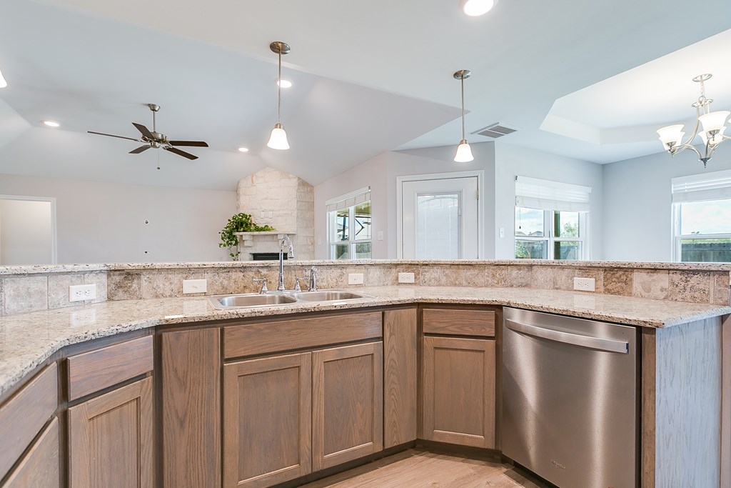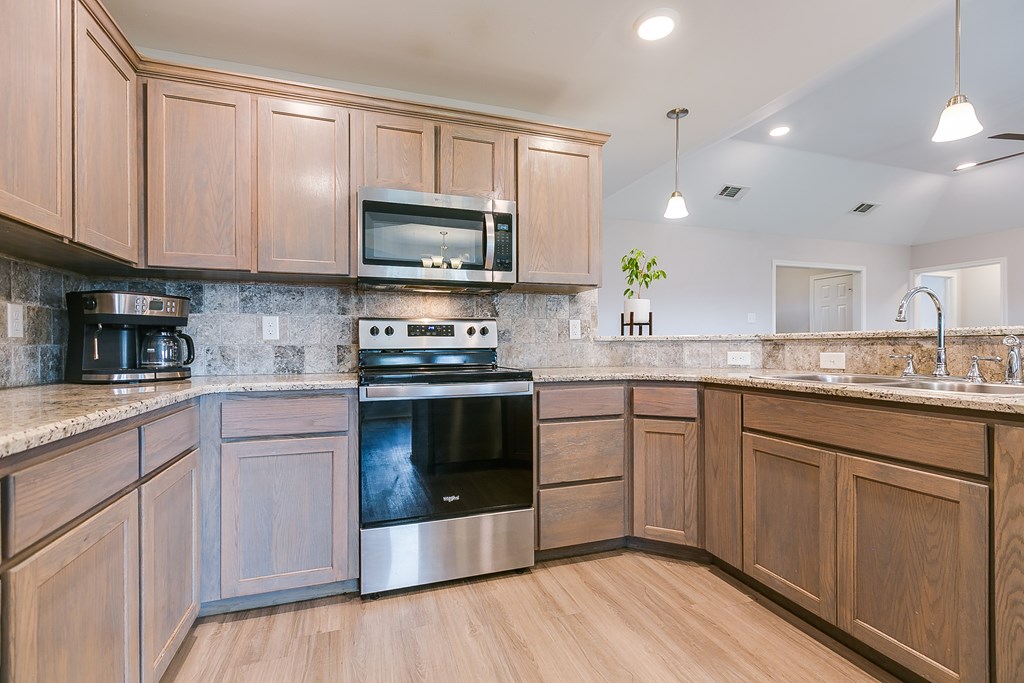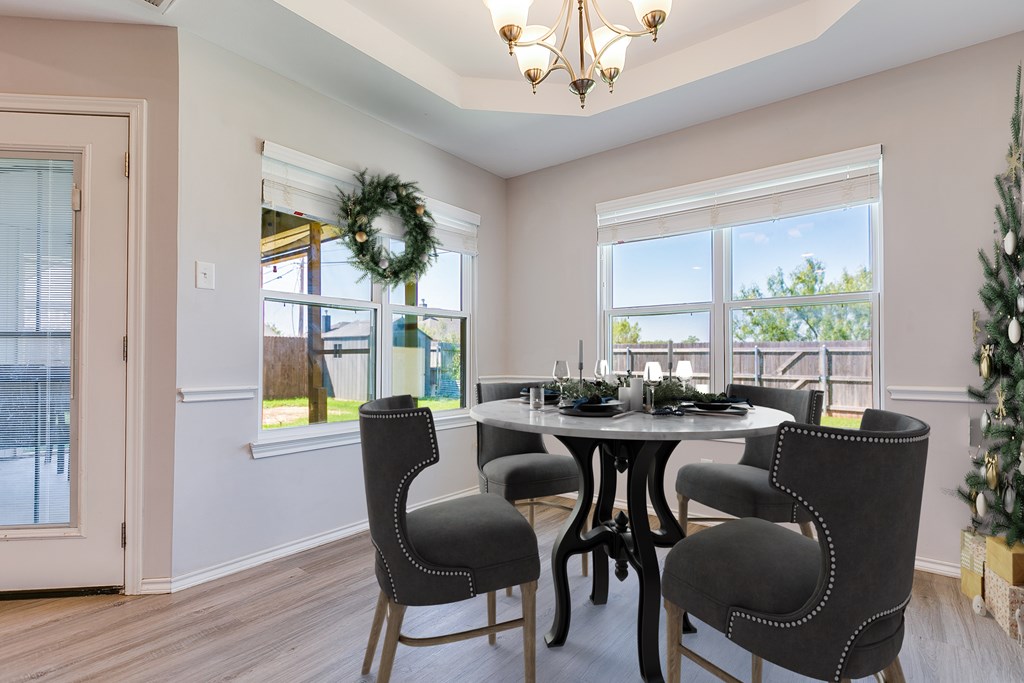 Just in time for the Holidays and a 4.375% Assumable VA rate*. Tucked away in a serene cul-de-sac in the highly sought-after Bonham school district is this picturesque 4 bedroom, 2 bath home. The inviting foyer & spacious living room boasts tall ceilings, stone gas fireplace, plenty of natural light atoned with gorgeous wood laminate flooring, and opens to a well-designed kitchen and dining area. The kitchen offers plenty of cabinet space, granite countertops, pantry and stainless steel appliances. The split floor plan offers a private primary ensuite with brand new carpet, a spacious bathroom featuring separate soaking tub and shower, double vanities, custom walk-in closet with amazing built-ins and chandelier lighting. Landscaped yards provide a serene oasis and thecharming screened in back patio is the perfect place to indulge in your morning coffee watching kiddos play in the lush grass of the fenced Texas sized yard that backs up to a wooded area for extra privacy. Photos staged*