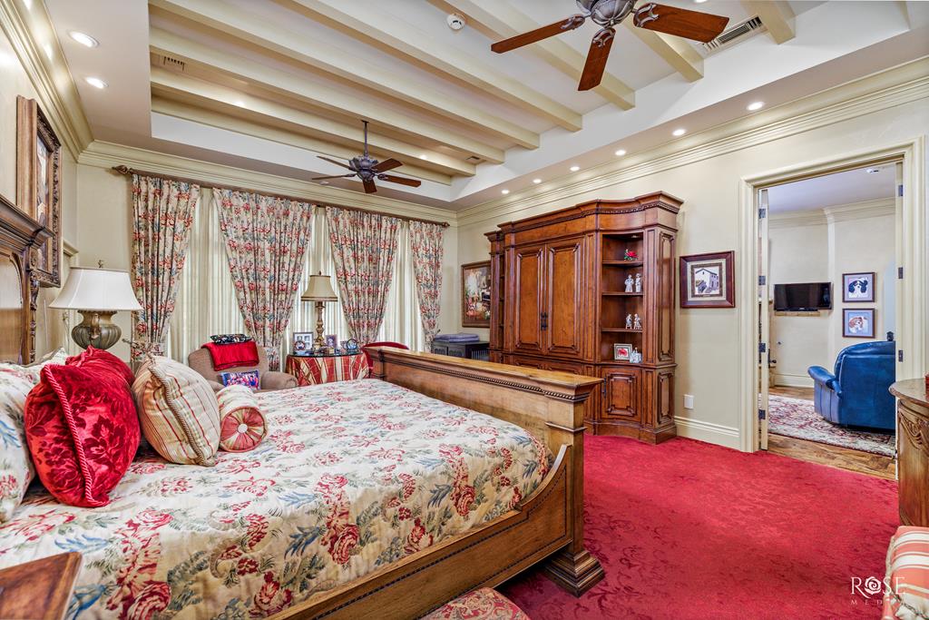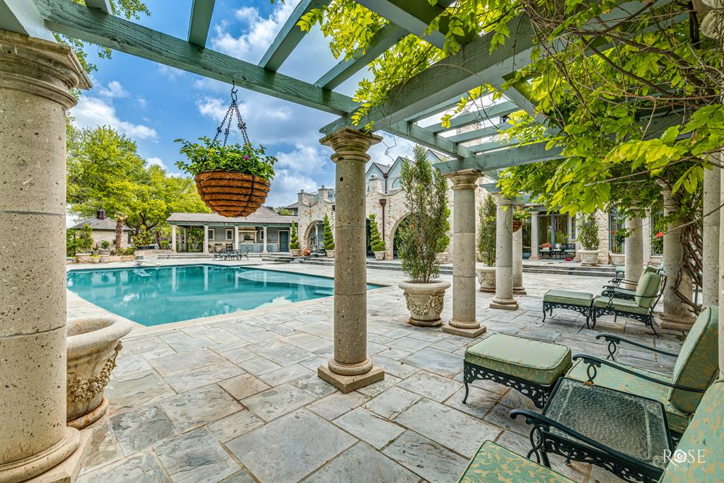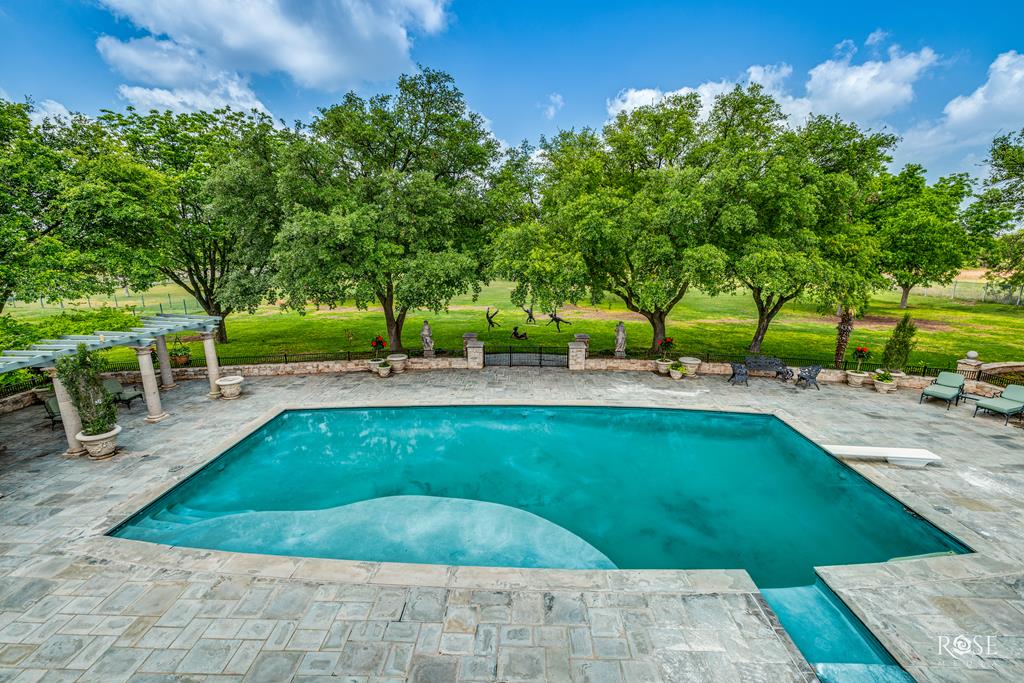 Discover unparalleled luxury in this 9,670 sq ft custom-designed Italian Mediterranean estate, masterfully crafted by Phillip Templeton. PLEASE NOTE PROPERTY CAN BE SUBDIVIDED! Nestled on 9.82 lush acres, this stunning property offers an elegant blend of classic design & modern amenities. Features include 5 spacious bedrooms ,5 luxurious bathrooms, 3 half baths, 5 expansive living areas perfect for entertaining and relaxation, as well as a library, office, & art room, catering to all your lifestyle needs. 4 beautiful fireplaces add warmth & charm. A lovely grand entrance with wrought iron railing details sets the tone for the rest of the home. Outdoor amenities include an incredible resort-style pool, outdoor kitchen, and entertaining area, 4 car garage, 960 sq ft barn, well, 2.902 acres of leased riverfront featuring a charming gazebo & dock, and private road lined with a pecan orchard to house. This estate is a rare gem that combines luxurious living with the tranquility of nature.