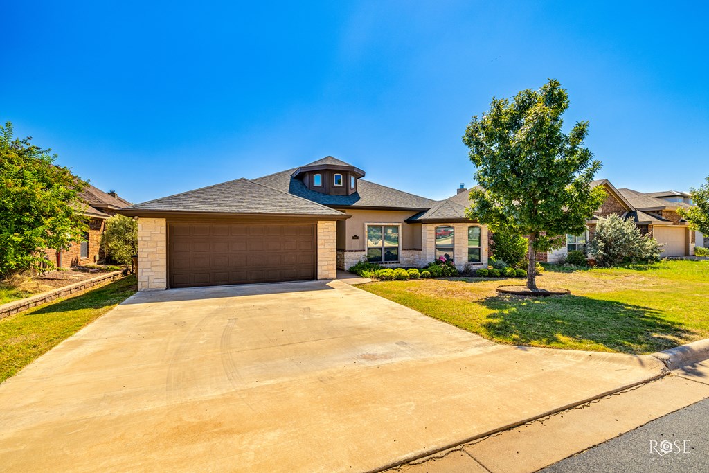 Designed for comfortable living, this beautiful home spoils with its stunning attention to detail. The open floor-plan home could be described as sun-sational with its natural light filled rooms. Kitchen has stainless appliances, abundant granite counter space, large island breakfast bar, and french-door pantry. High-end custom window treatments and brand new carpet add to the elegance of this great home. The comfortable living space is open to kitchen and dining, and features a beautiful wood beam ceiling treatment along with a large picture window looking into the backyard. The oversized bedrooms offer a combination of luxury and comfort living which you deserve. The 8' privacy fence adds that extra touch of seclusion for enjoying your backyard and the extended custom rock patio. All of this and more, within walking distance to the neighborhood elementary school.