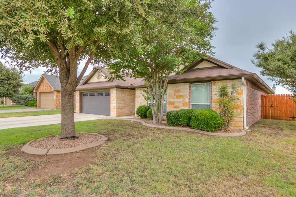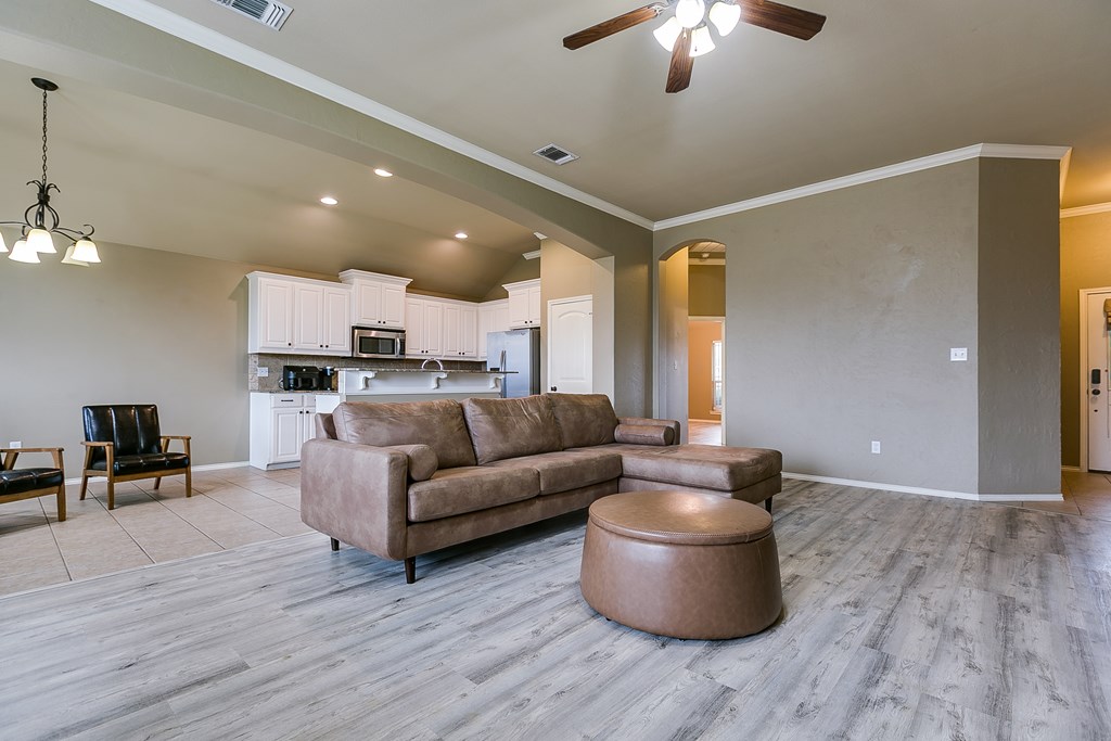 This stunning 3-bedroom, 2-bathroom home offers an inviting open floor plan with high ceilings and elegant arches that enhance its architectural charm. Enjoy the modern touch of gorgeous vinyl flooring throughout—no carpet in sight! The kitchen is a chef's dream, featuring custom raised-panel cabinets, sleek granite countertops, and stainless steel appliances. The west-facing orientation ensures lovely afternoon shade in the spacious backyard, where you can relax under the covered patio that extends into the yard. Plus, the garage stands out with its uniquely scored and stained floor. Don't miss the chance to make this beautiful home your family's new haven!