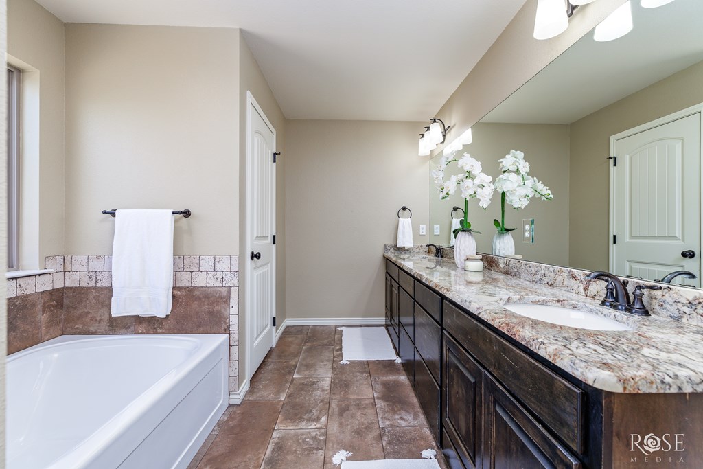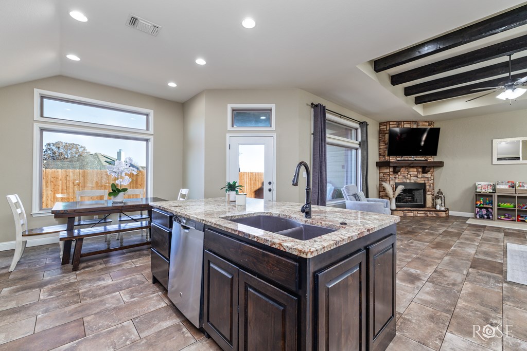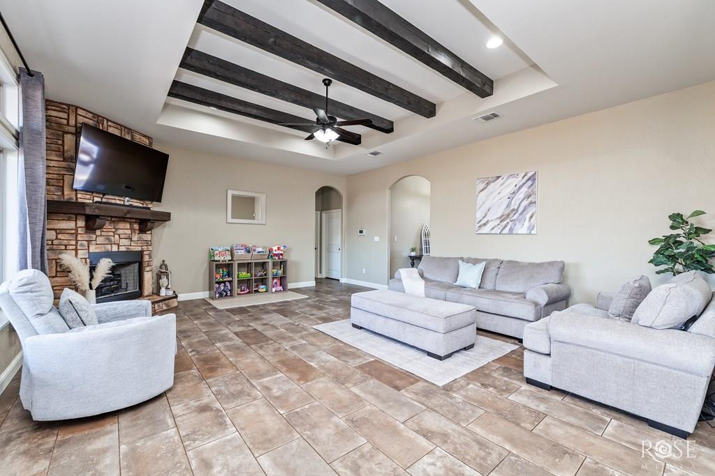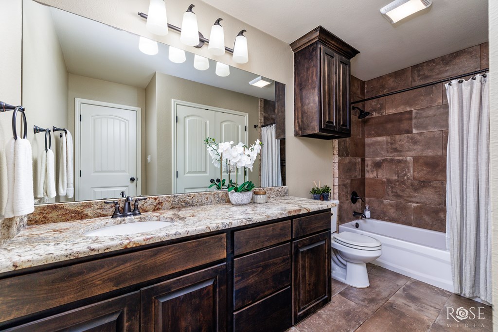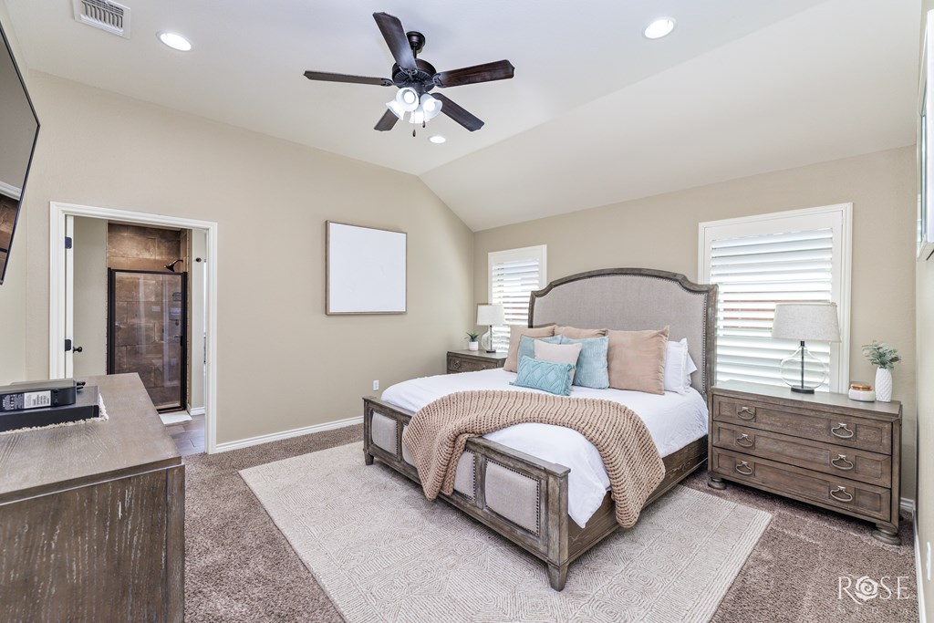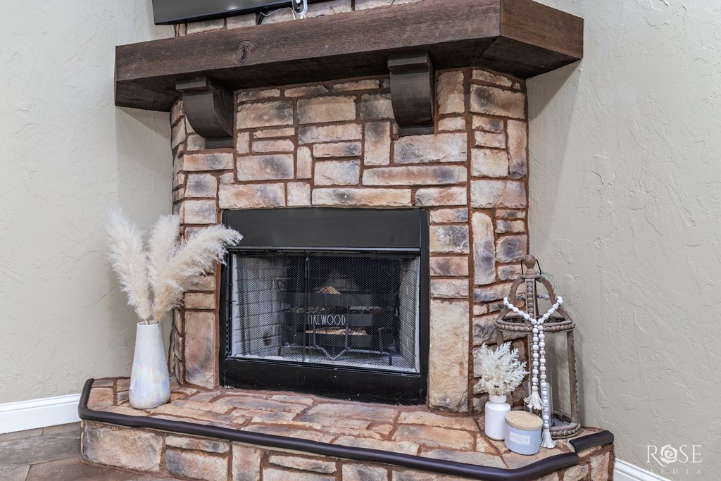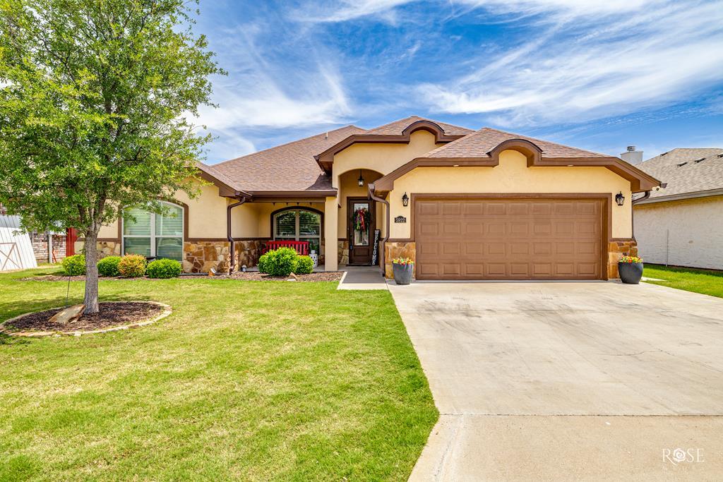 Welcome to this stunning 4-bedroom, 2-bathroom home in the highly desirable Trinity West community! Step inside to an inviting open-concept living area featuring tall ceilings, large windows that fill the space with natural light, and a cozy wood-burning fireplace—perfect for relaxing or entertaining. The spacious kitchen seamlessly flows from the living room, offering an abundance of cabinetry, sleek granite countertops, and a convenient island for meal prep and gathering. The split bedroom layout ensures privacy, with the primary suite thoughtfully separated from the additional bedrooms. The ensuite bathroom is a true retreat, featuring both a tub and a shower, along with a dual vanity for added convenience. Outside, enjoy a fully fenced backyard with a tall privacy fence and a covered patio, providing an ideal setting for outdoor enjoyment. This home combines comfort, style, and an unbeatable location!