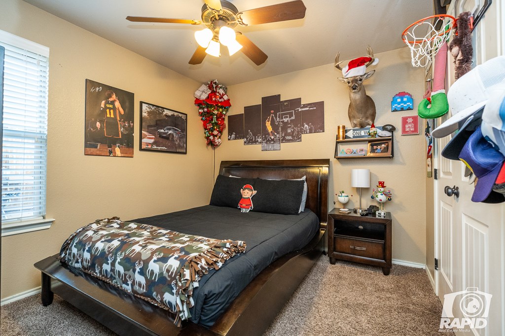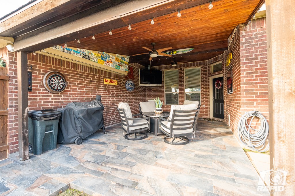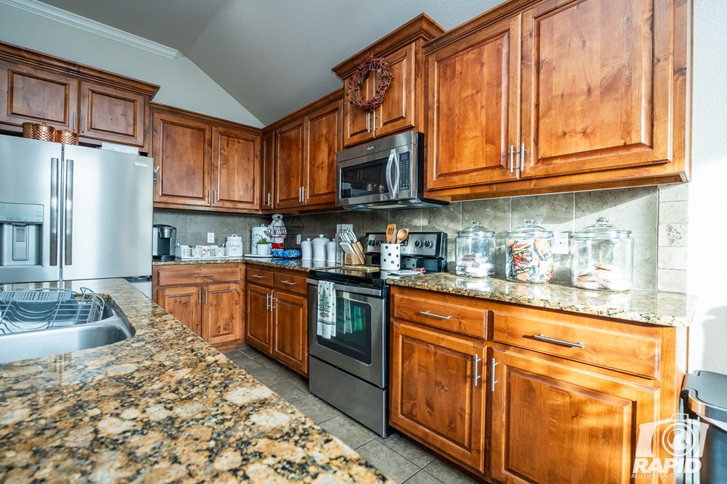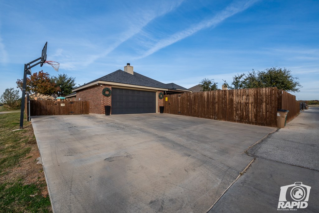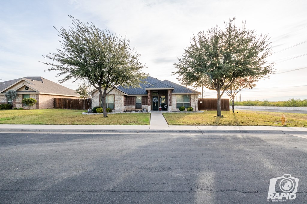 Absolutely stunning describes this 4 bedroom 2 bath home. You will appreciate the attention to detail throughout. As you enter you are welcomed with a large open-concept floor plan, featuring tall ceilings, beautiful fireplace, large windows and great view of the backyard with inviting covered patio. Just a few of the details you deserve, are the stylish hardwood floors, the abundant upper-end cabinetry in the kitchen, beautiful granite counters, stainless steel appliances, a rock and granite island, extra parking, and floor plan that flows. In the master suite, there is an additional 11x7 area, along with the ensuite offering a soaker tub and separate shower, H/H sinks and more. While all secondary bedrooms are a great size also. The backyard is ready to enjoy with its privacy fence and back porch with beautiful wood trim ceiling and tile flooring. New Roof Oct. 2024. Don't miss the side yard, perfect for a dog run.