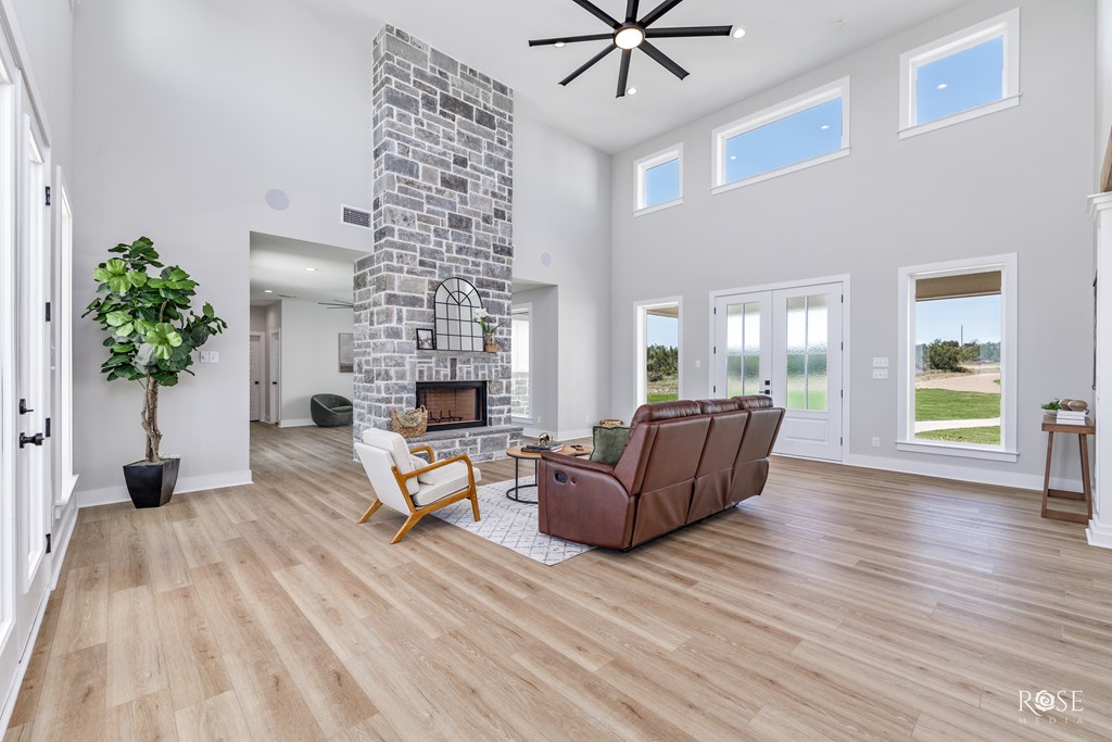 This New Construction Home is a SHOW STOPPER! Situated on 20.556 acres this stunning 4 bed, 5.5 bath, 4 living, and 3 car garage home offers incredible views and a fantastic layout. The large living room invites you in featuring high ceilings and a massive fireplace. To the left of the living you have a formal dining that takes you to the most incredible kitchen with cabinets and counters galore. The views from the kitchen are breathtaking and the pantry is a dream. The upstairs boasts a huge gameroom perfect for a theatre, pool table, or whatever you can imagine. The primary suite will blow you away as it stunning. It comes complete with 2 closets, sitting area, brick feature wall, views and a bathroom designed for royalty. The back patio and yard will have you gasping with the outdoor fireplace, tons of patio space and views of twin buttes lake, twin mountains and at night it showcases the city lights. Check out the pics and schedule your showing today!!!
