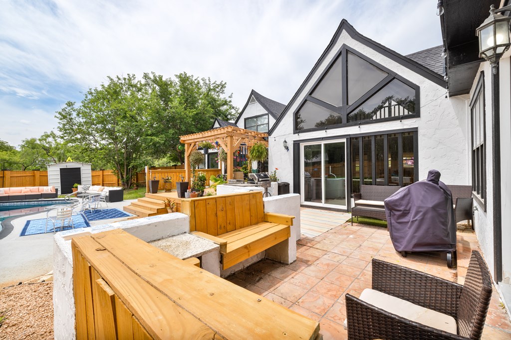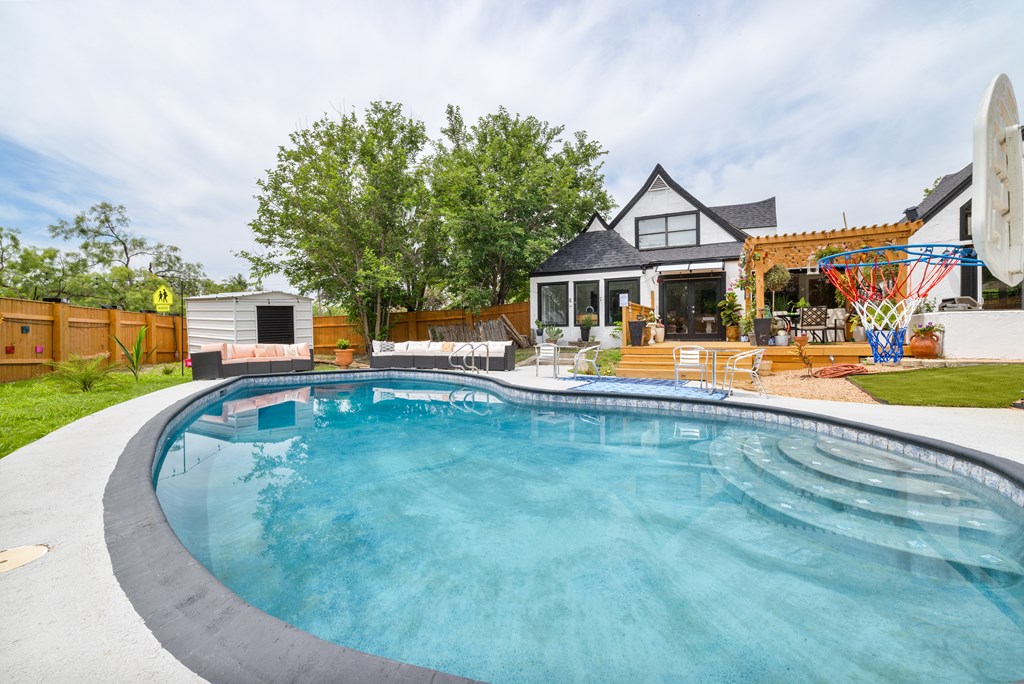 Stunning, beautifully designed home in the prestigious Santa Rita area. This luxury home boasts a completely renovated 5 bedrooms (or 4 bedrooms & an office), 3 bathrooms, a game room, enormous, fully equipped kitchen with stainless steel appliances, which includes a new microwave and dishwasher! New roof, updated plumbing in kitchen and primary bath, updated electrical, fresh exterior & interior paint, renovated kitchen with new cabinets, an added wet bar, new flooring throughout, renovated swimming pool, and added new privacy fence! The kitchen area has granite countertops and a gas island range. The kitchen either a 2nd living or family dining with an open concept. The exquisite primary suite is absolutely stunning with vaulted ceilings and a spa-like luxury shower with a jacuzzi waterfall bathtub. The extravagance continues to the spacious landscaped backyard haven featuring a large deck with a beautiful pergola, BBQ grill and seating area, and an oversized inground pool!