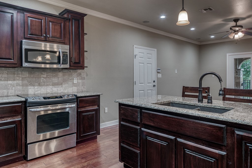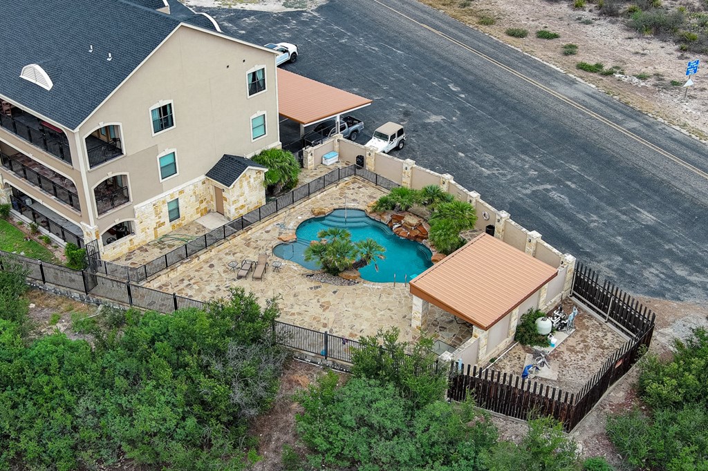 Rough Canyon Condo Unit #104. The Rough Canyon Condos are ideally located at Rough Canyon north of Del Rio, TX with access off of Hwy 277 and overlooking beautiful Lake Amistad. This 3 bedroom, 2 bath condo is conveniently located on the 1st floor with a beautiful view of the manicured lawn, just a short distance from the in-ground pool and patio area and next door to the Lake Amistad Condos is Hookers restaurant, convenient store and outdoor venue. The condo features wood laminate floors throughout with the exception of tile in the bathrooms. The open floor-plan, French doors and large windows gives the condo a very light and airy feel. A large covered patio can be easily accessed from both the living room and master bedroom. These condos are the ideal 2nd home setup where you can lock the door and be gone for months and come back to a well cared for setting. A perfect place to enjoy the natural beauty of Lake Amistad!