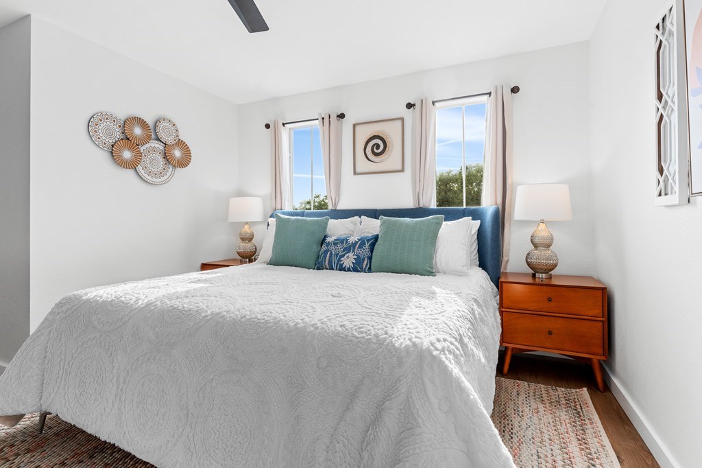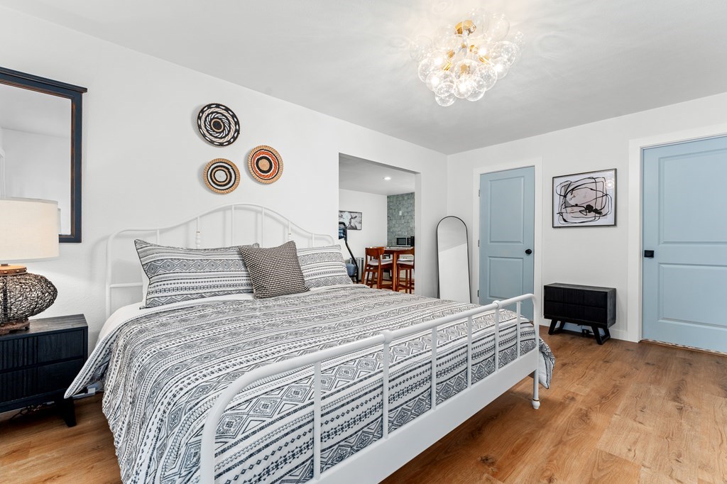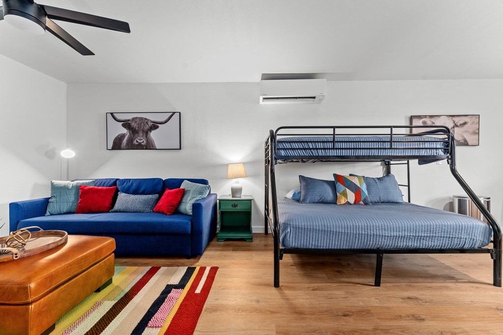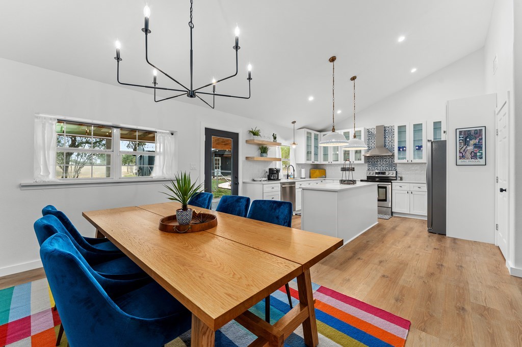 **Front house - 1740 sq ft. Back house - 650 sq ft ** Located on 3 acres only a couple miles from downtown Wimberley, the fully updated main house has 4 bedrooms, 2 full baths, a large living room with vaulted ceilings and cedar accents, a wood burning fireplace, an open concept kitchen and dining area, stainless steel appliances, spacious pantry, ample cabinet space, large walk in closets, and a beautiful outdoor patio. The guest house is a studio apartment with a kitchenette, full bathroom, walk in shower, utility room, and attached garage. Property is fenced and heavily wooded with large heritage live oaks! Both roofs replaced in 2024. All furnishings can be sold with the home for an additional price.
