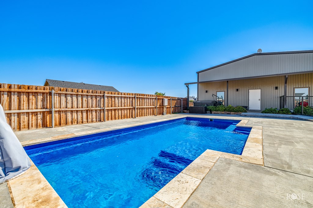 Discover refined elegance in this stunning 4-bedroom, 4-bathroom residence, set on 1.25 acres of beautifully landscaped grounds. The expansive master suite offers a private sanctuary, while the upgraded kitchen and open-concept living areas ensure both comfort and style. An upstairs finished out bonus room adds versatility to the layout and could be used as an office or another bedroom. It has a full bathroom and large walk-in closet. Step outside to your own private retreat, featuring an inviting inground pool, 2,400 SF fully air-conditioned shop with a 720 SF apartment/theatre room provides endless possibilities for relaxation or work. The apartment has a kitchenette with a large island and a half bath. A full bath is plumbed in and could be finished easily. Experience the perfect blend of luxury and functionality in this exceptional home.