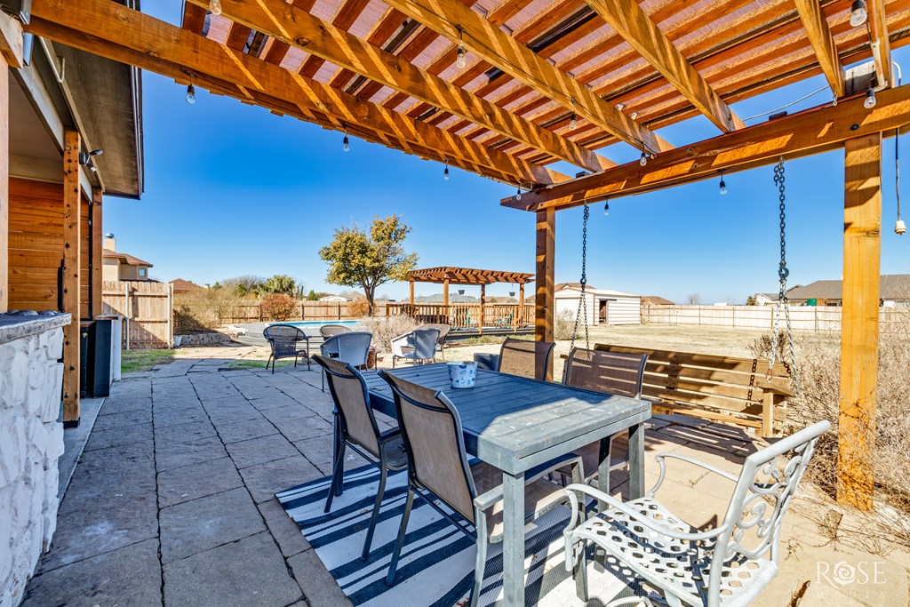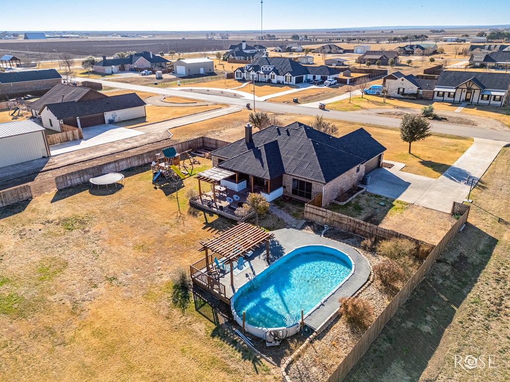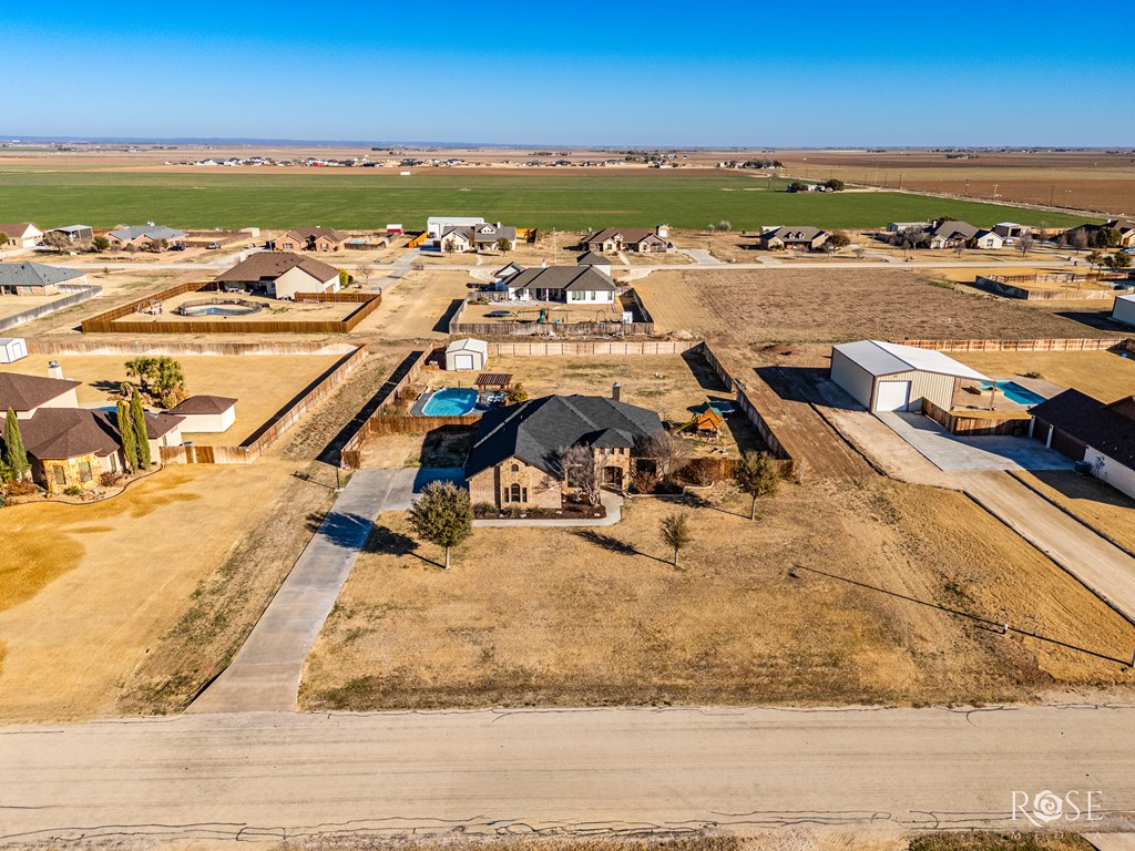 This is a stunning property! The spacious layout with 3-bedroom, 2-bathroom is situated on 1.24 acres in the desirable Iron Horse I subdivision in Wall, TX. This residence offers 2,245 square feet of living space and includes a formal dining, a rock fireplace, granite countertops, custom trim, and blinds throughout. Enjoy your outdoor life with family and friends around the sparkling pool and outdoor kitchen. Additional features include front and back sprinklers, a fenced backyard, a 16x24 storage building, and a good water well. Notably, a Millersview water meter has been purchased and set.
