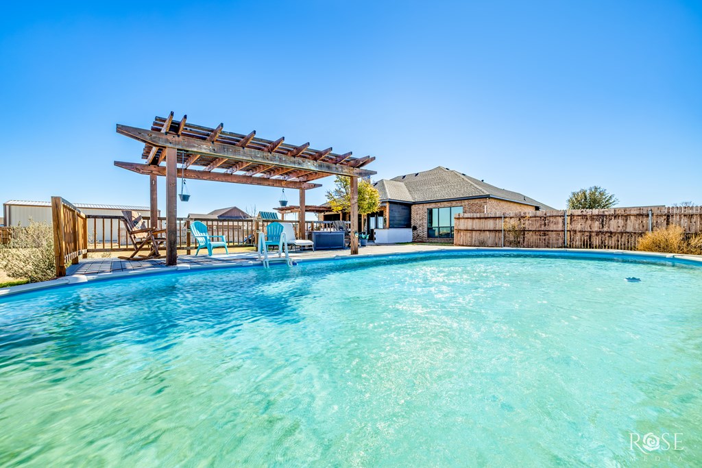 This is a stunning property! The spacious layout with 3-bedroom, 2-bathroom is situated on 1.24 acres in the desirable Iron Horse I subdivision in Wall, TX. This residence offers 2,245 square feet of living space and includes a formal dining, a rock fireplace, granite countertops, custom trim, and blinds throughout. Enjoy your outdoor life with family and friends around the sparkling pool and outdoor kitchen. Additional features include front and back sprinklers, a fenced backyard, a 16x24 storage building, and a good water well. Notably, a Millersview water meter has been purchased and set. Seller is offering $5,000 incentive to Buyer.